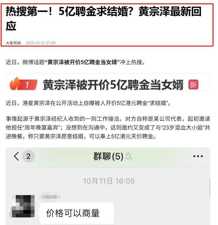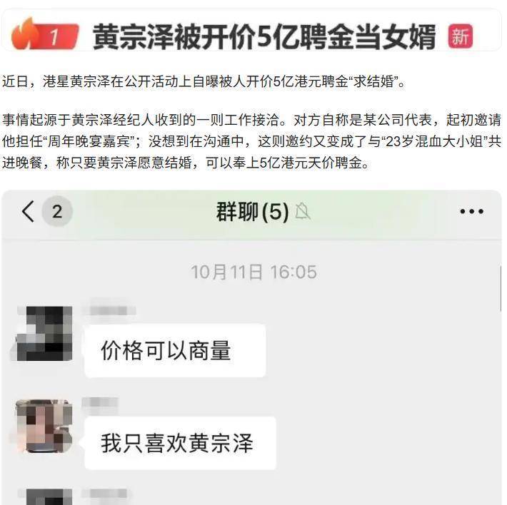 然而,前不久黄宗泽却因为一场“天价招亲”,再次成为网友们热议的焦点。