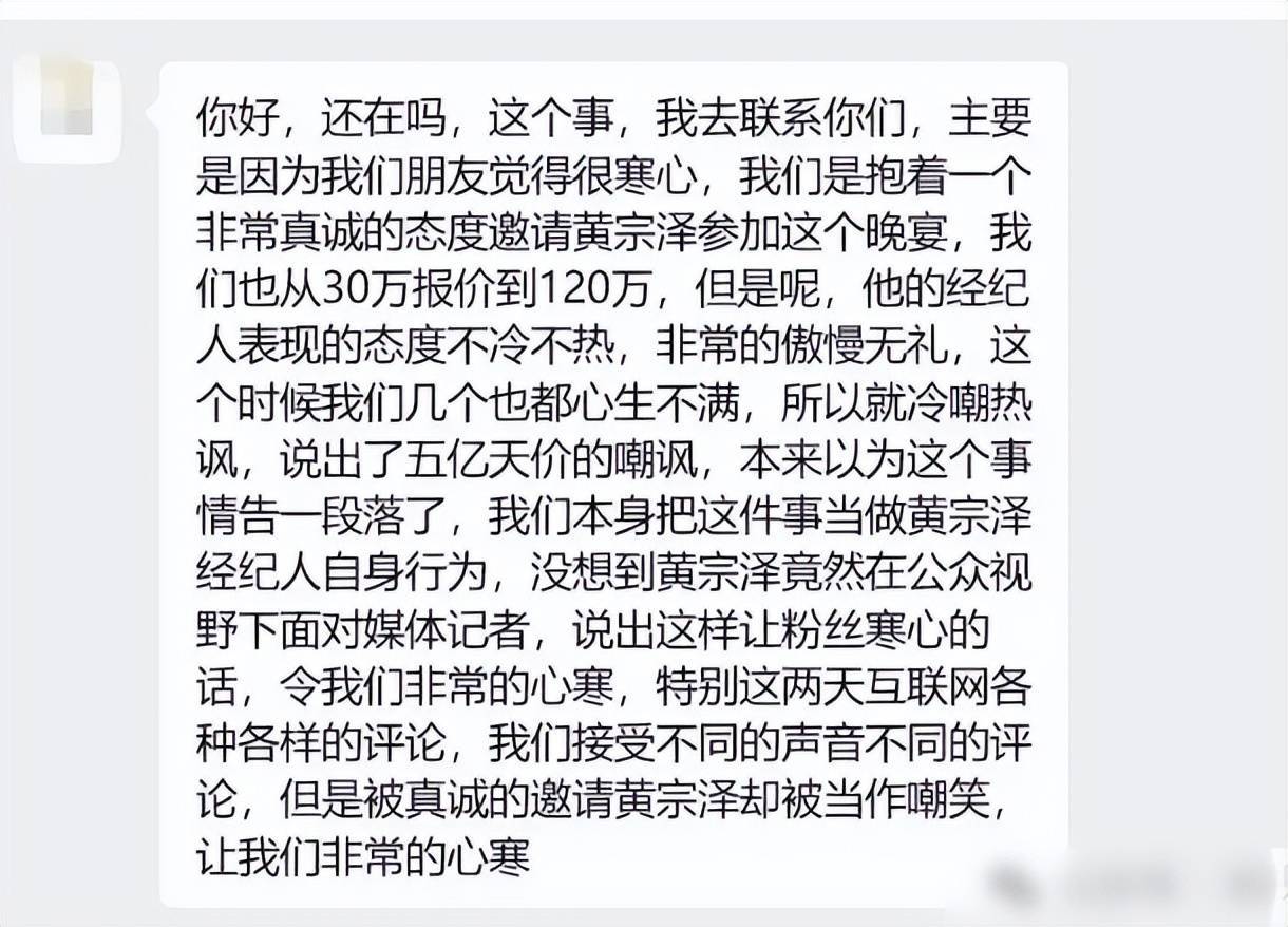 真先生联系上黄宗泽经纪人后,就发出邀请。