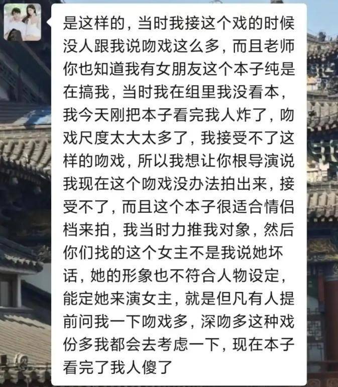 原来,胡凌宸之前就跟工作人员抱怨吻戏太多,提出只能借位拍摄。